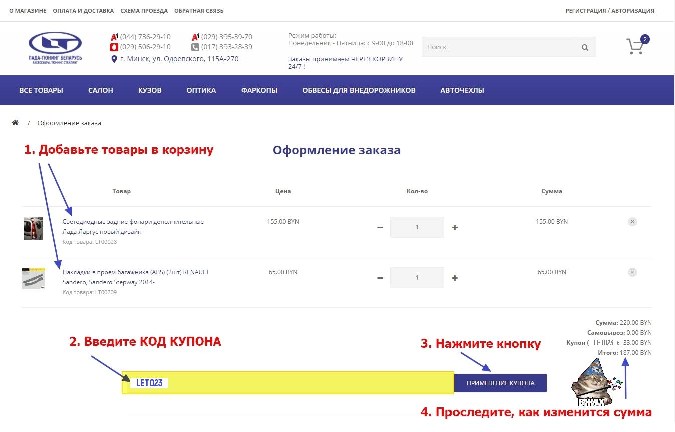 Применяя код купона во время оформления вашей заявки через корзину, вы безоговорочно соглашаетесь с вышеперечисленными условиями.