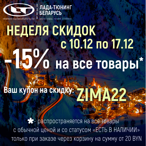 Друзья, мы снова предлагаем воспользоваться нашим предложением и порадовать себя и свой автомобиль аксессуарами со скидками! С 10 декабря по 17 декабря 2022 у вас есть возможность воспользоваться купоном на скидку ZIMA22 при заказе товаров через корзину нашего магазина.